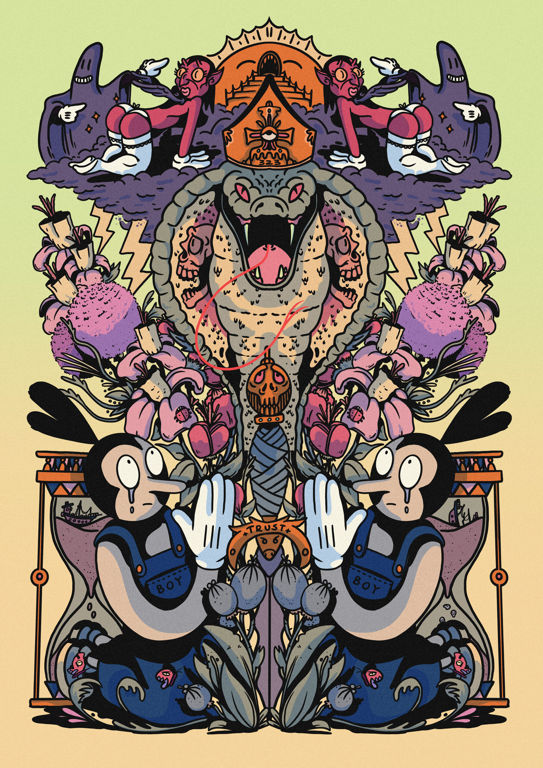 Here lives an archive of client-commissioned illustration made pre-2025, alongside a current contemporary practice i'm focusing on pointing forward. The archive showcases professional experiences responding to briefs, collaborating with clients, and working across physical and digital formats.